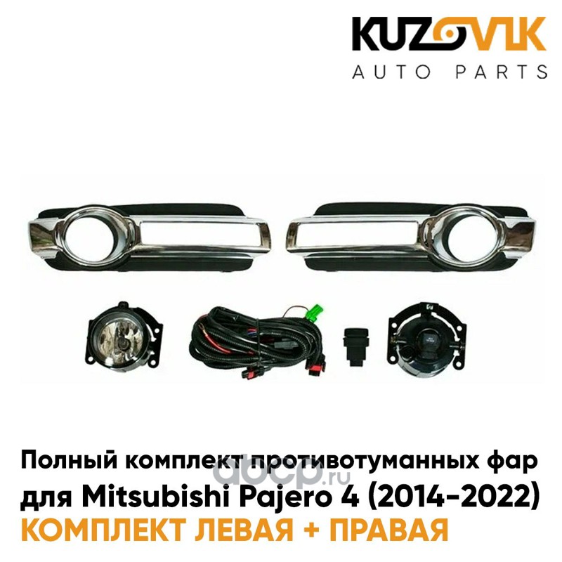 Фары противотуманные полный комплект Mitsubishi Pajero 4 (2014-2022) с рамками хром, проводкой