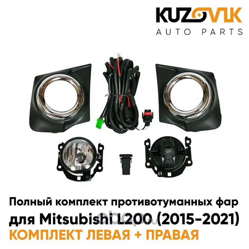 Фары противотуманные полный комплект Mitsubishi L200 (2015-2021) с рамками хром, проводкой