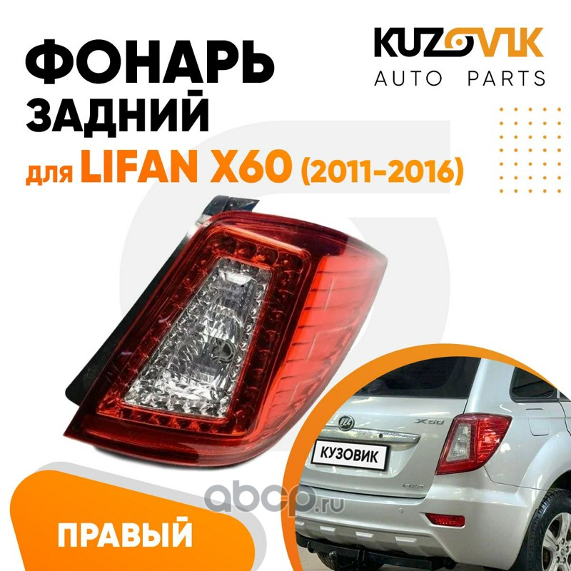 | KUZOVIK | KZVK1720049741 | Фонарь задний правый Lifan X60 (2011-2016) | ||