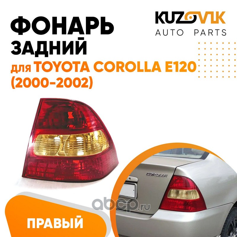 | KUZOVIK | KZVK1720048772 | Фонарь задний правый Toyota Corolla E120 (2000-2002) одна желтая полоса | ||