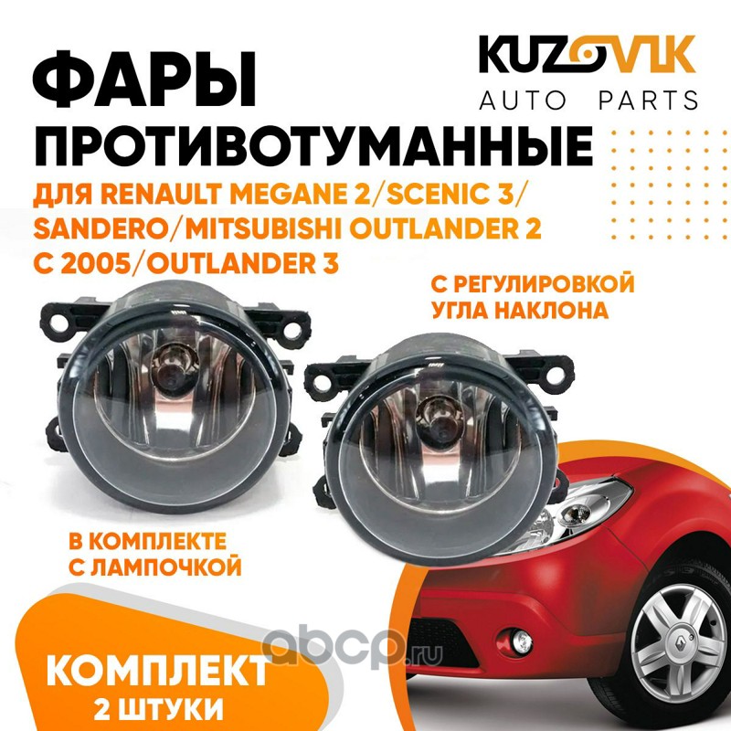 | KUZOVIK | KZVK1600048709 | Фары противотуманные комплект Renault Megane 2 / Sandero (2 шт) л+п с регулировкой угла и лампочкой |
