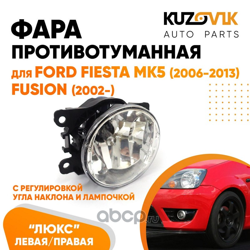 | KUZOVIK | KZVK1600048634 | Фара противотуманная ЛЮКС Ford Fiesta MK5 (2006-2013) л=п (1 шт) с регулир. угла наклона и лампочкой | ||