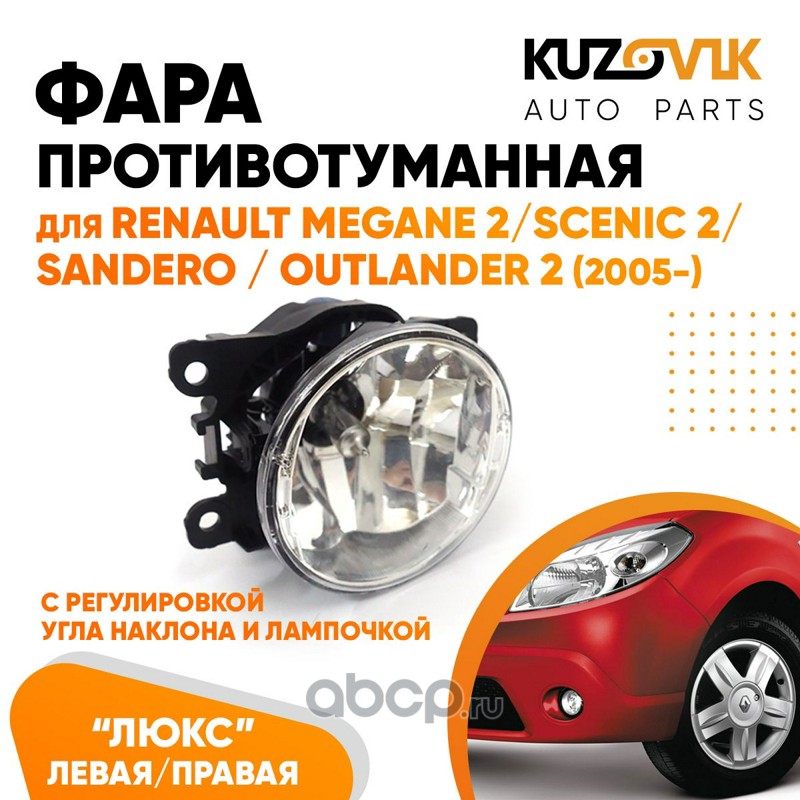| KUZOVIK | KZVK1600048641 | Фара противотуманная ЛЮКС Renault Megane 2 / Sandero л=п (1 шт) с регулировкой угла и лампочкой | ||