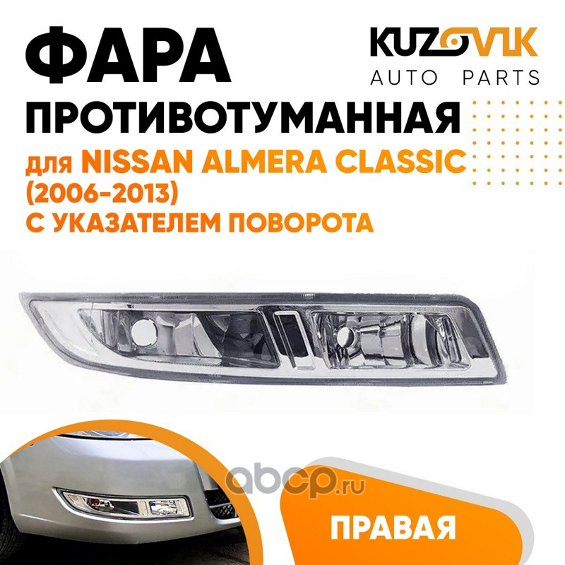 | KUZOVIK | KZVK1620048448 | Фара противотуманная правая Nissan Almera Classic (2006-2013) с указателем поворота | ||