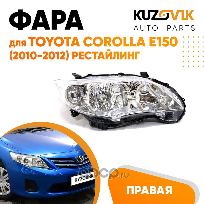 | KUZOVIK | KZVK1520047067 | Фара правая Toyota Corolla E150 (2010-2012) рестайлинг под корректор | ||