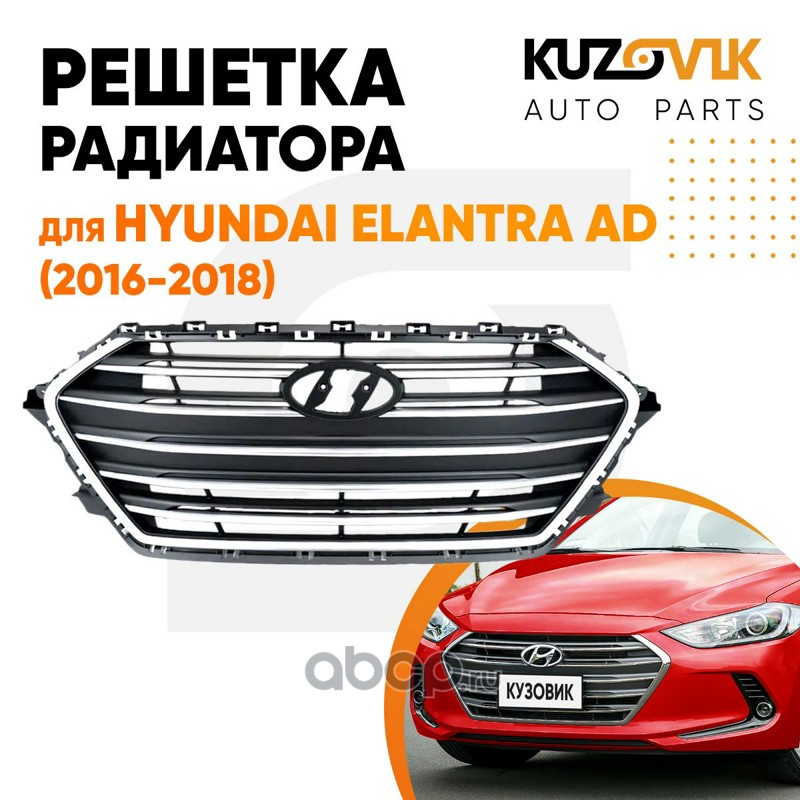 | KUZOVIK | KZVK3000046918 | Решетка радиатора Hyundai Elantra AD (2016-2018) с хромированным молдингом | ||
