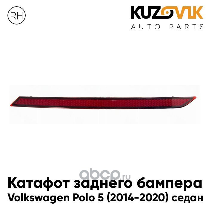 | KUZOVIK | KZVK1920046539 | Катафот отражатель заднего бампера правый Volkswagen Polo 5 (2014-2020) седан рестайлинг | ||