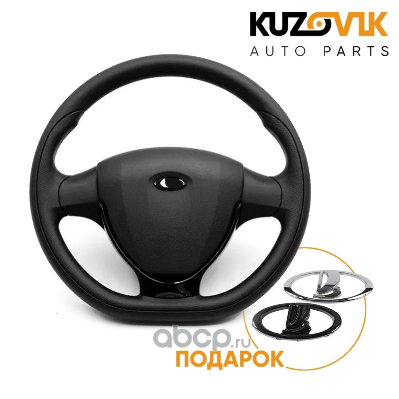 Руль Лада Приора / ВАЗ 2170 в стиле Гранта Спорт / Приора 2 с черной накладкой + значки в подарок