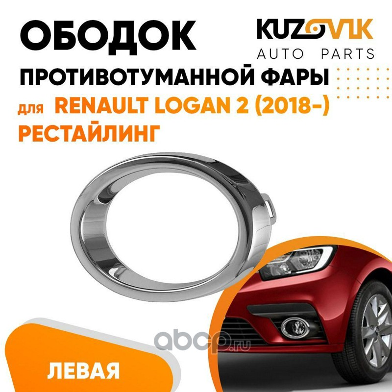 | KUZOVIK | KZVK3210021335 | Ободок противотуманной фары левый круглый хром Renault Logan 2 (2018-) рестайлинг накладка | ||