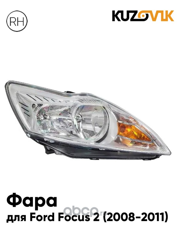 | KUZOVIK | KZVK1520066082 | Фара правая Ford Focus 2 (2008-2011) рестайлинг хром, 7 контактов, с электрокорректором | ||