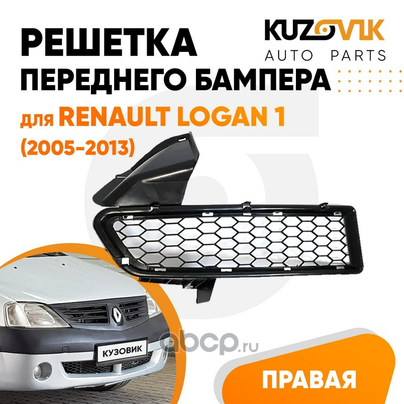 | KUZOVIK | KZVK3120013834 | Решетка переднего бампера правая Renault Logan 1 (2005-2010) дорестайлинг | ||