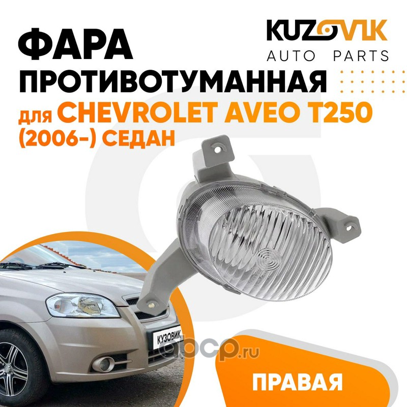 | KUZOVIK | KZVK1620013914 | Фара противотуманная правая Chevrolet Aveo T250 (2006-) седан (рифленое стекло) | ||
