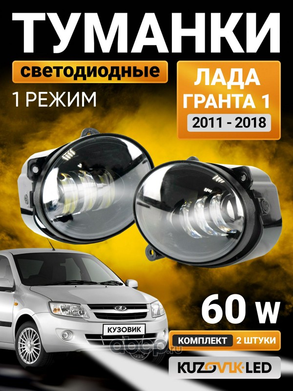 | KUZOVIK | KZVK1600064783 | Противотуманные фары LED для Лада Гранта 1 (2011-2018) дорестайлинг 60W 1 Режим 6000K 3 линзы с регулировкой | ||
