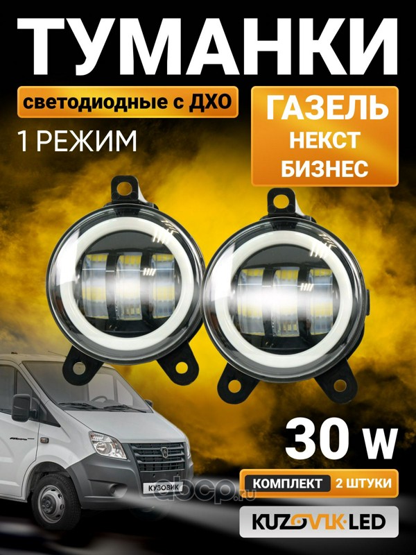 | KUZOVIK | KZVK1600057484 | Противотуманные фары LED с ДХО для Газель Некст, Бизнес 30W 1 Режим 6000К с регулировкой | ||