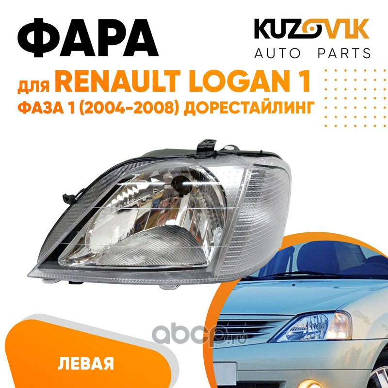 | KUZOVIK | KZVK1510020921 | Фара левая Renault Logan 1 фаза 1 (2004-2008) дорестайлинг с корректором | ||