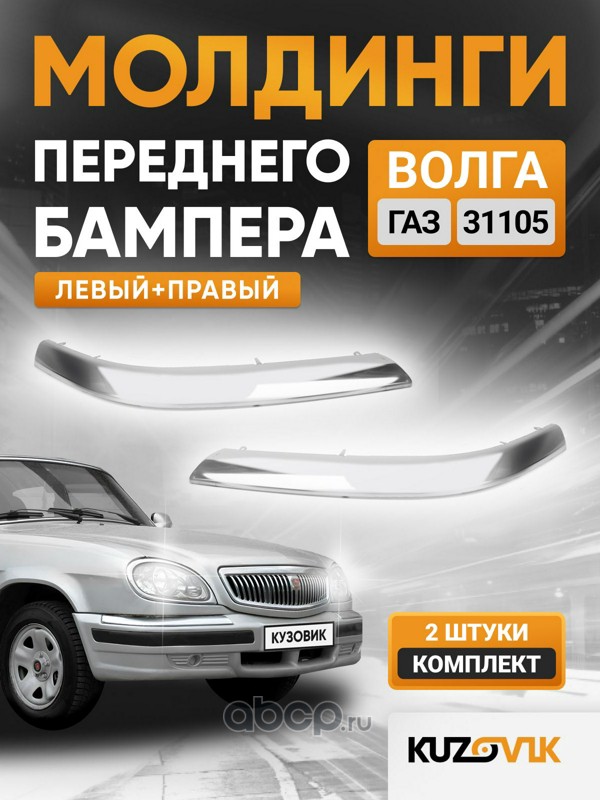 | KUZOVIK | KZVK5200065535 | Накладки переднего бампера хром ГАЗ ВОЛГА 31105 левая + правая комплект 2 штуки | ||