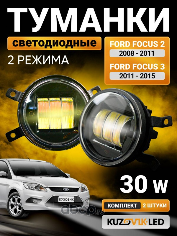 | KUZOVIK | KZVK1600021491 | Противотуманные фары универсальные 30W 2 Режима Ford Focus 2 (08-11) Focus 3 (11-15) без регулировки | ||