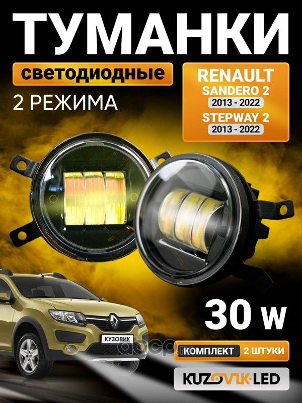 | KUZOVIK | KZVK1600021529 | Противотуманные фары универсальные 30W Renault Sandero 2 (13-22) Stepway 2 (13-22) без регулировки | ||