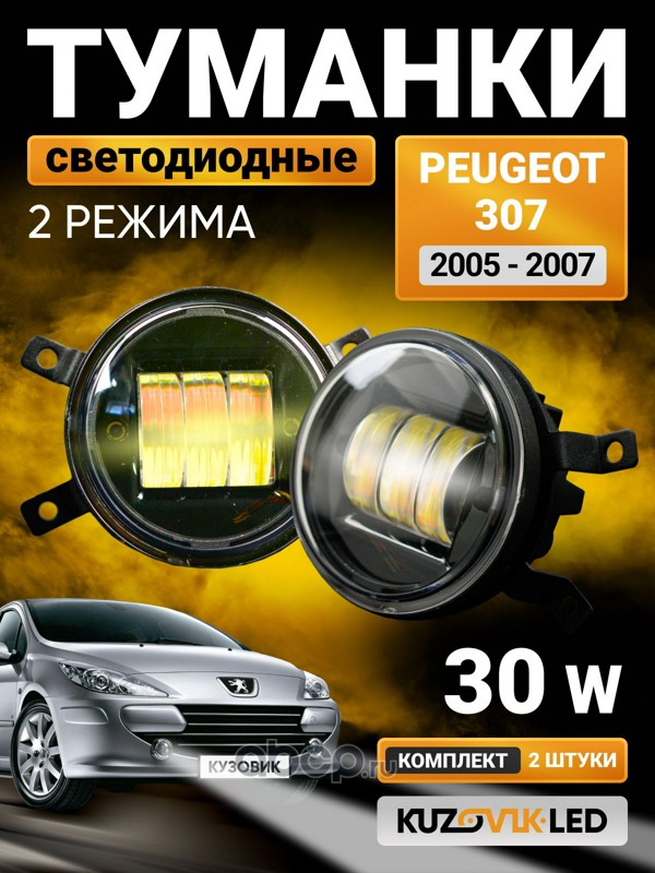 | KUZOVIK | KZVK1600021030 | Противотуманные фары универсальные 30W 2 Режима комплект Peugeot 307 (05-07) (2 шт) без регулировки | ||