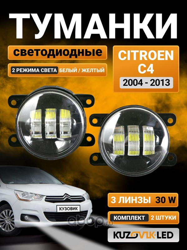 | KUZOVIK | KZVK1600021074 | Противотуманные фары универсальные 30W 2 Режима комплект Citroen C4 (2004-2013) (2 шт) | ||
