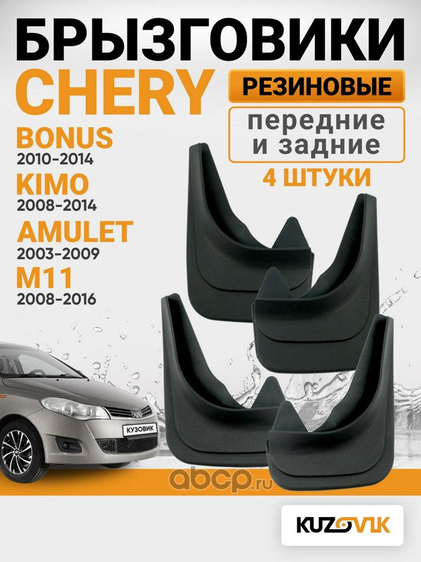 | KUZOVIK | KZVK5800021172 | Брызговики Chery Bonus (2010-2014) Kimo (2008-2014) Amulet (2003-2009) M11 (2008-2016) | ||