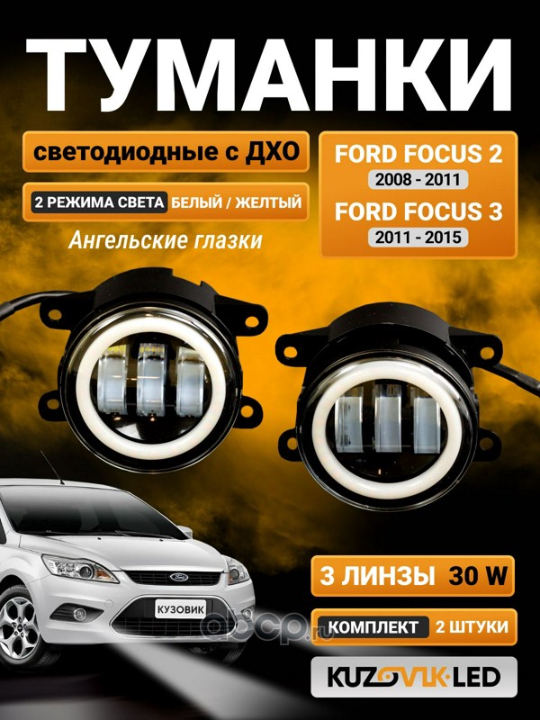 | KUZOVIK | KZVK1600021039 | Противотуманные фары универсальные 30W 2 Режима c ДХО комплект Ford Focus 2 08-11 Focus 3 11-15 2 шт | ||