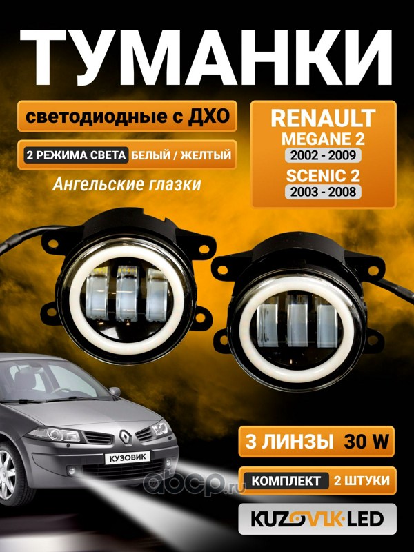 | KUZOVIK | KZVK1600021051 | Противотуманные фары 30W 2 Режима c ДХО комплект Renault Megane 2 (02-09) Scenic 2 (03-08) (2 шт) | ||