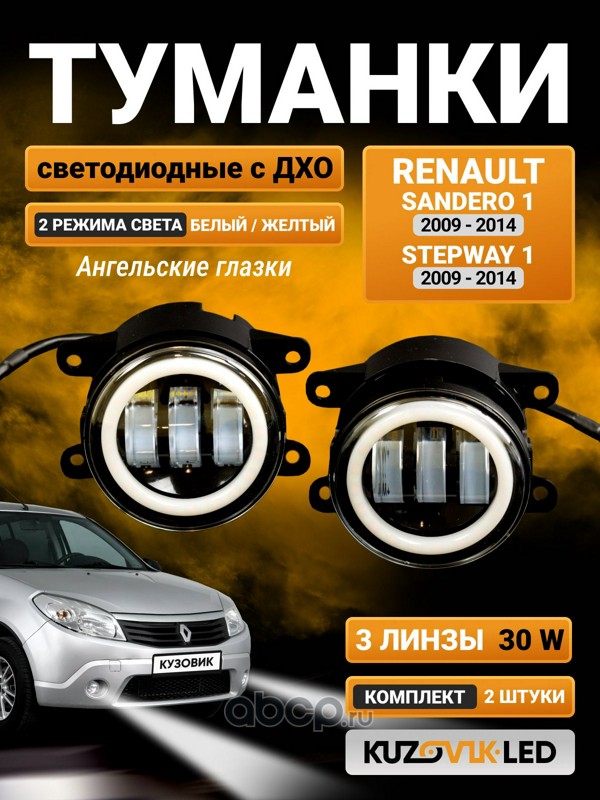 | KUZOVIK | KZVK1600021045 | Противотуманные фары 30W 2 Режима c ДХО комплект Renault Sandero 2 (13-22) Stepway 2 (13-22) (2 шт) | ||
