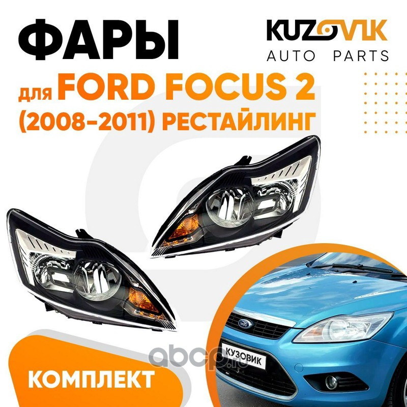 | KUZOVIK | KZVK1500082932 | Фары Ford Focus 2 (2008-2011) рестайлинг черные с эл. корр комплект лев+прав 2 штуки | ||