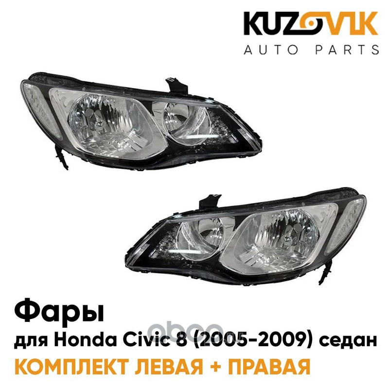 | KUZOVIK | KZVK1500082946 | Фары Honda Civic 8 (2005-2009) седан белый поворотник под эл. корр комлект лев+прав 2 штуки | ||