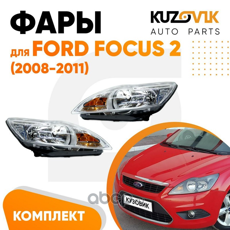 | KUZOVIK | KZVK1500082931 | Фары Ford Focus 2 (2008-2011) рестайлинг хром с эл. корр комплект лев+прав 2 штуки | ||
