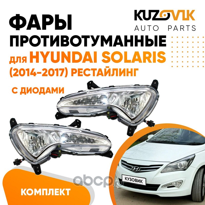 | KUZOVIK | KZVK1600049280 | Фары противотуманные с диодами Hyundai Solaris 1 (2014-2017) рестайлинг с ДХО 2 шт комплект лев + пр | ||