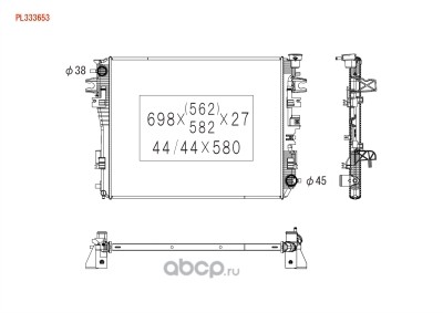 Радиатор охлаждения двигателя, CHRYSLER PT CRUISER AT, Бачки пластиковые, Соты паяные алюминиевые