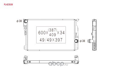Радиатор охлаждения двигателя, BMW X3 MT, Бачки пластиковые, Соты паяные алюминиевые 600x387x34