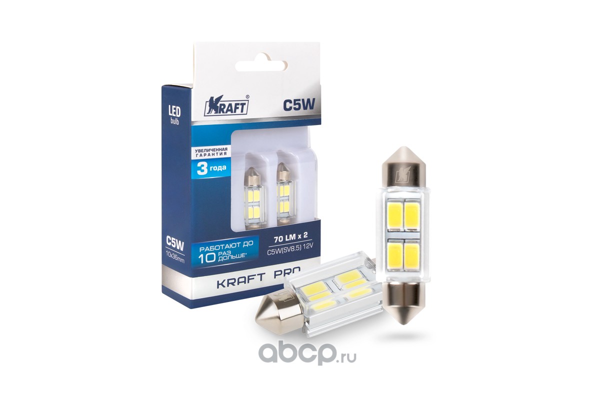 | Kraft | KT700263 | Светодиод C5W (SV8,5) 10x36 12v (white) Pro (2 шт. Европодвес) |