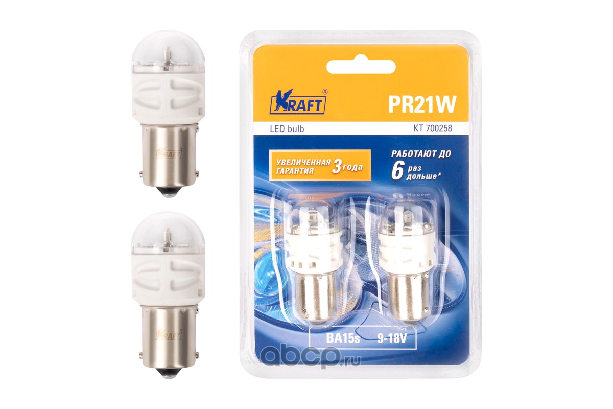 | Kraft | KT700258 | Светодиод PR21W (BA15s) 9-18v red (2 шт. Блистер) | ||