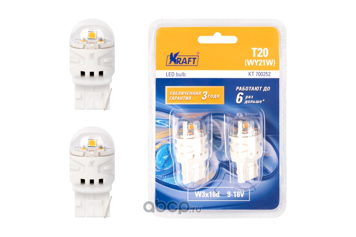 | Kraft | KT700252 | Светодиод T20 WY21W (W3x16d) 9-18v amber (2 шт. Блистер) | ||