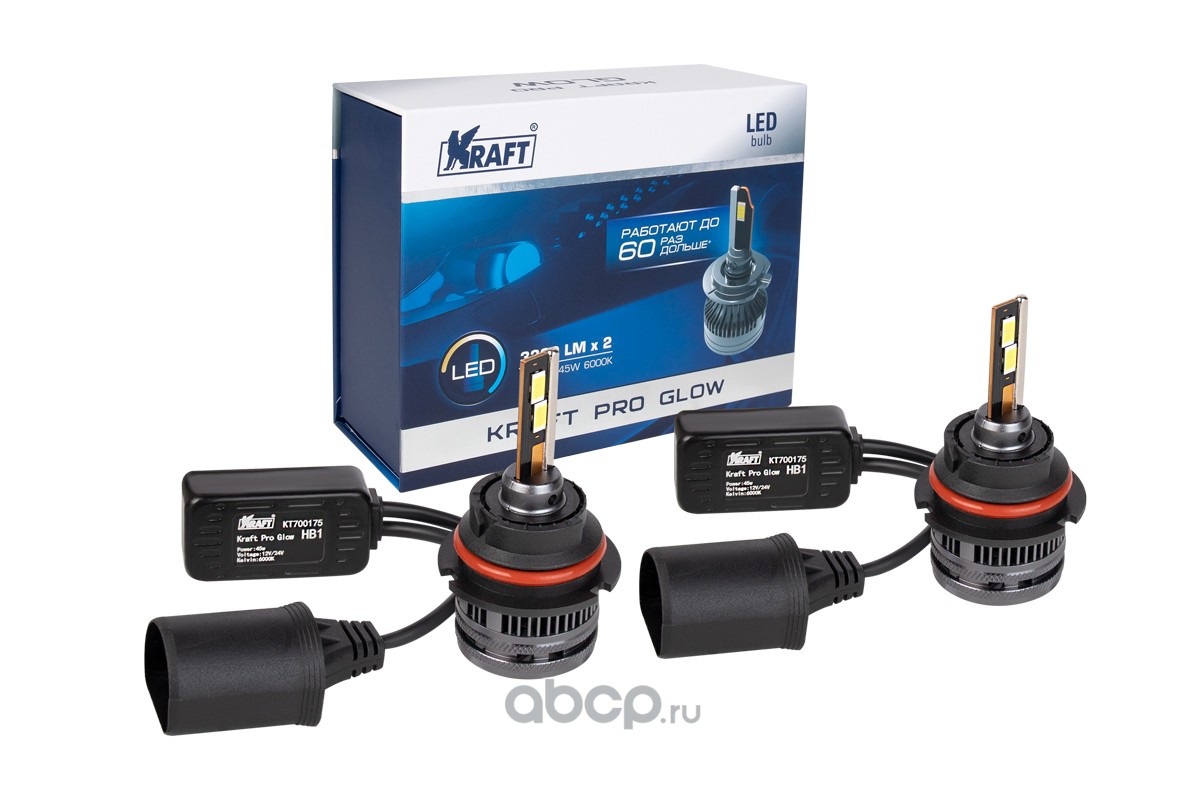 | Kraft | KT700175 | Светодиодная лампа HB1 12v/24v 45w (P29t) Kraft Pro Glow, 2 шт. в комплекте | ||