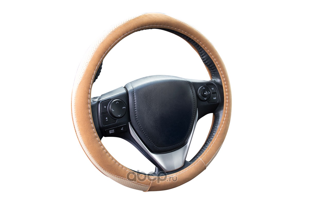 Оплетка рулевого колеса эко-кожа перфорированная + алькантара, бежевая, диаметр 37-39 см, размер М