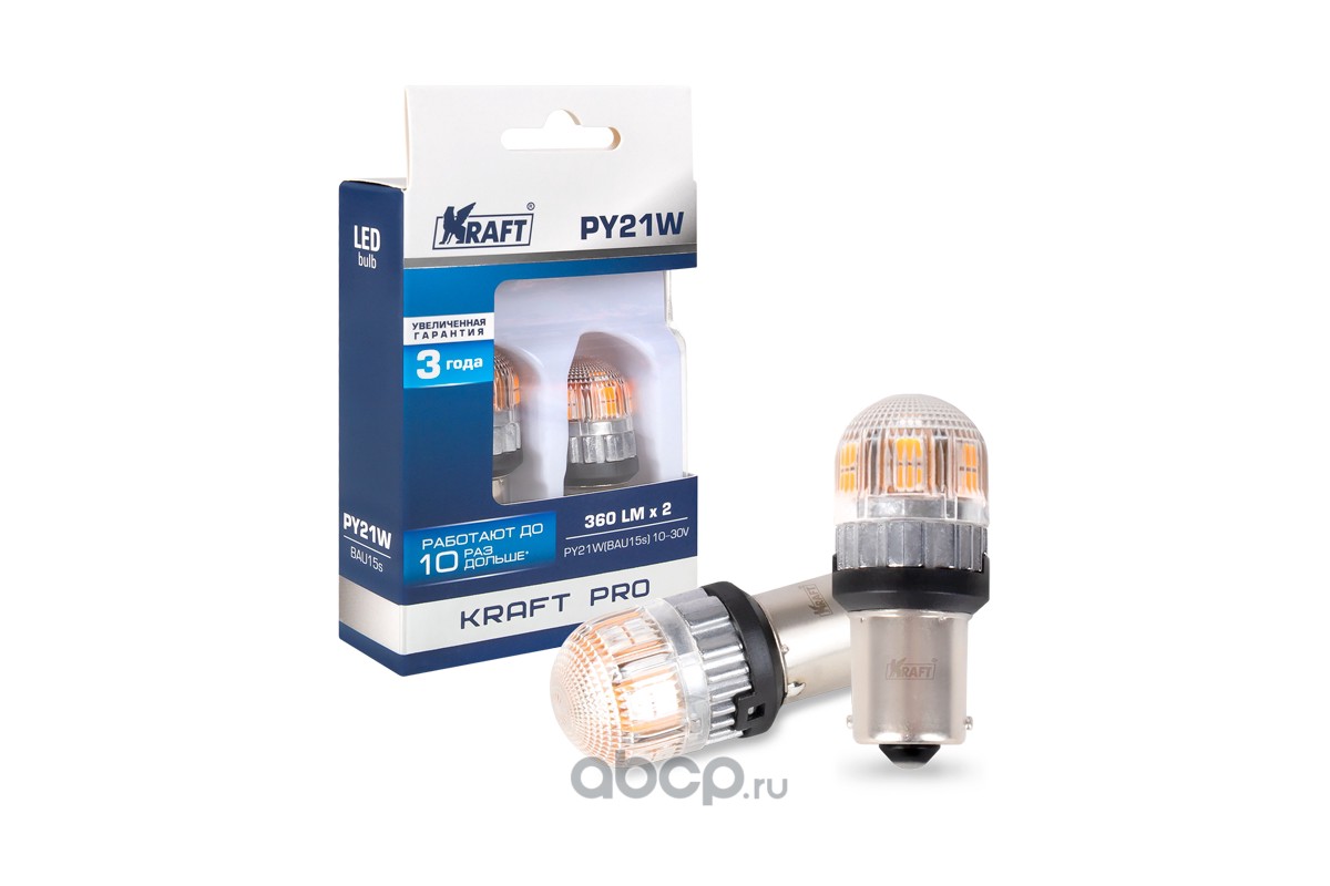 | Kraft | KT700272 | Светодиод PY21W (BAU15s) 10-30v (amber) Pro (2 шт. Европодвес) | ||