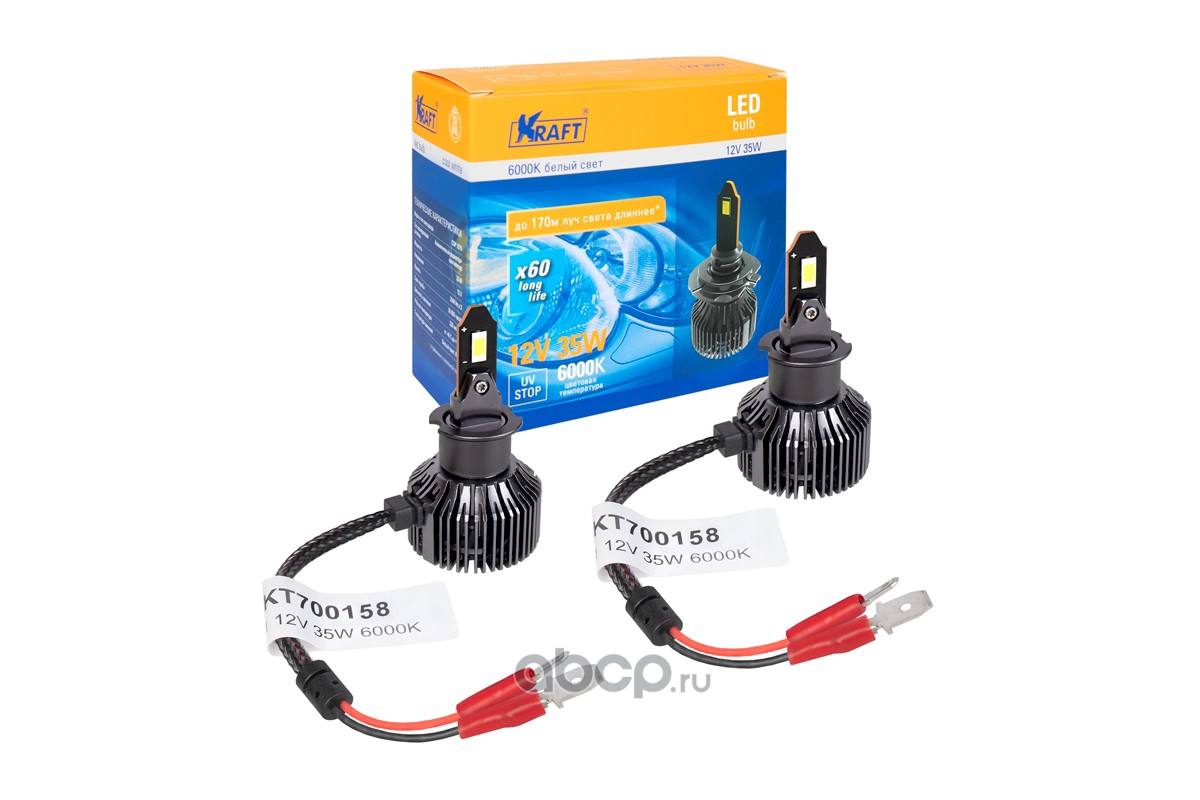 | Kraft | KT700158 | Светодиодная лампа H3 12v 35w (PK22s) Kraft, 2 шт. в комплекте | ||