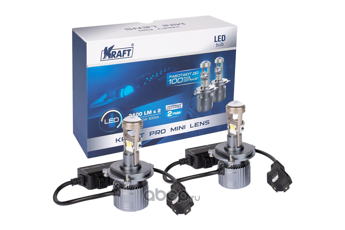| Kraft | KT700242 | Светодиодная лампа H4 9-18v 40w (P43t) Kraft Pro Mini Lens, 2 шт. в комплекте | ||