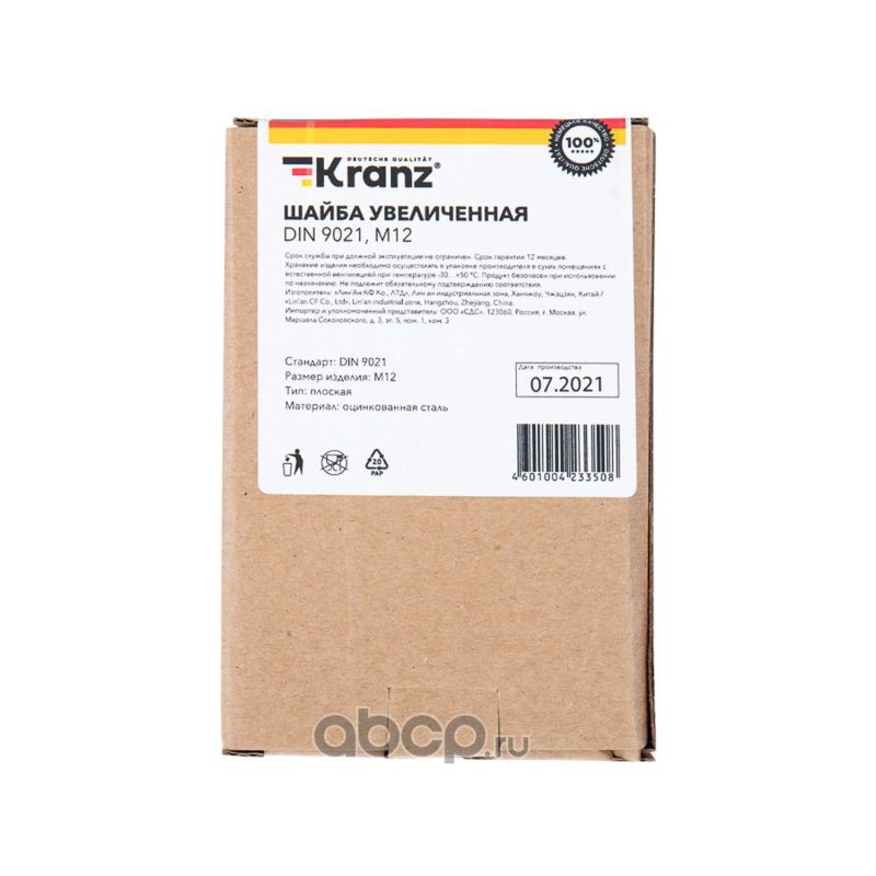 Kranz 130800121 Шайба увеличенная KRANZ DIN 9021, M12, упаковка поставщика ( 20 кг. / 1 000 шт.)