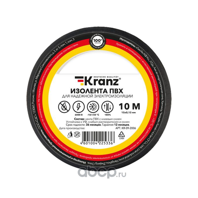 Kranz KR092006 Изолента ПВХ KRANZ 0.13х15 мм, 10 м, черная (10 шт./уп.)