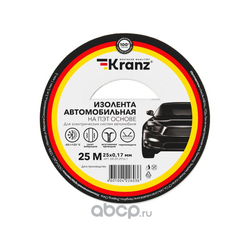 Kranz KR092916 Изолента автомобильная KRANZ полиэстер, 0.17х19 мм, 25 м