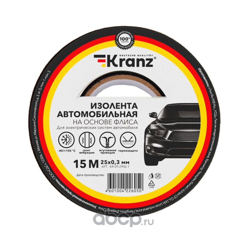 Kranz KR0929161 Изолента автомобильная KRANZ полиэстер, 0.17х25 мм, 25 м