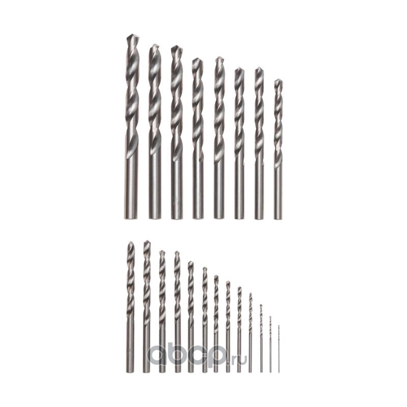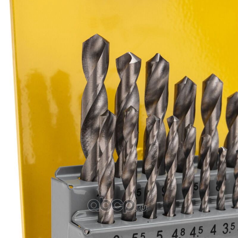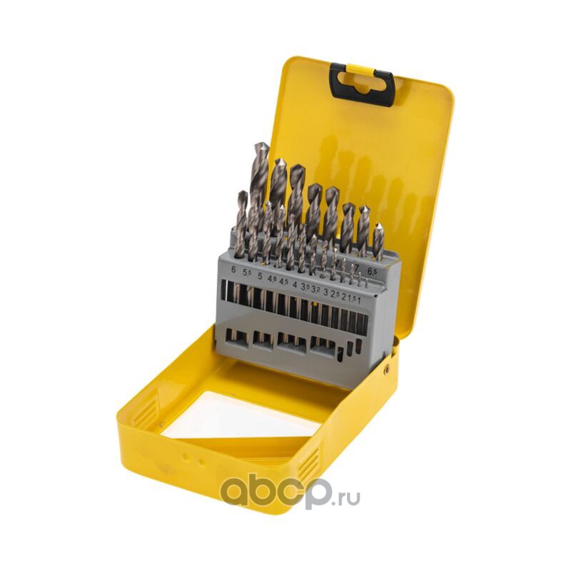 Набор сверл по металлу, 1-10мм (через 0,5мм, 3,2мм, 4,8мм), HSS, цилиндрический хвостовик, металлический кейс, 21 шт.