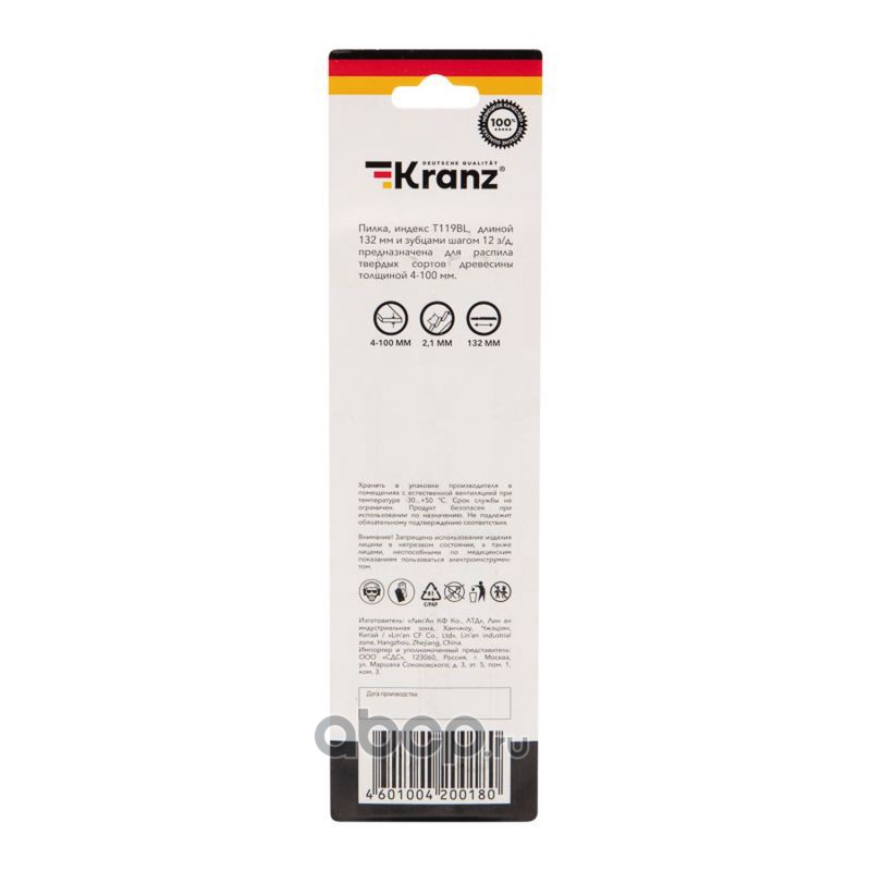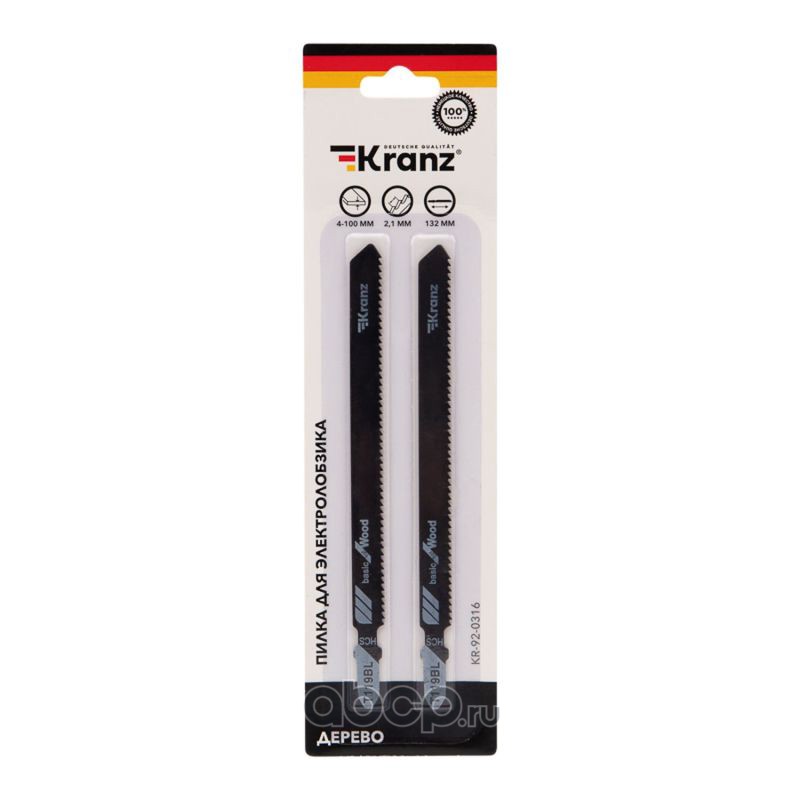 Пилка для электролобзика по дереву T119BL 132 мм 12 зубьев на дюйм 4-100 мм (2 шт./уп.) Kranz
