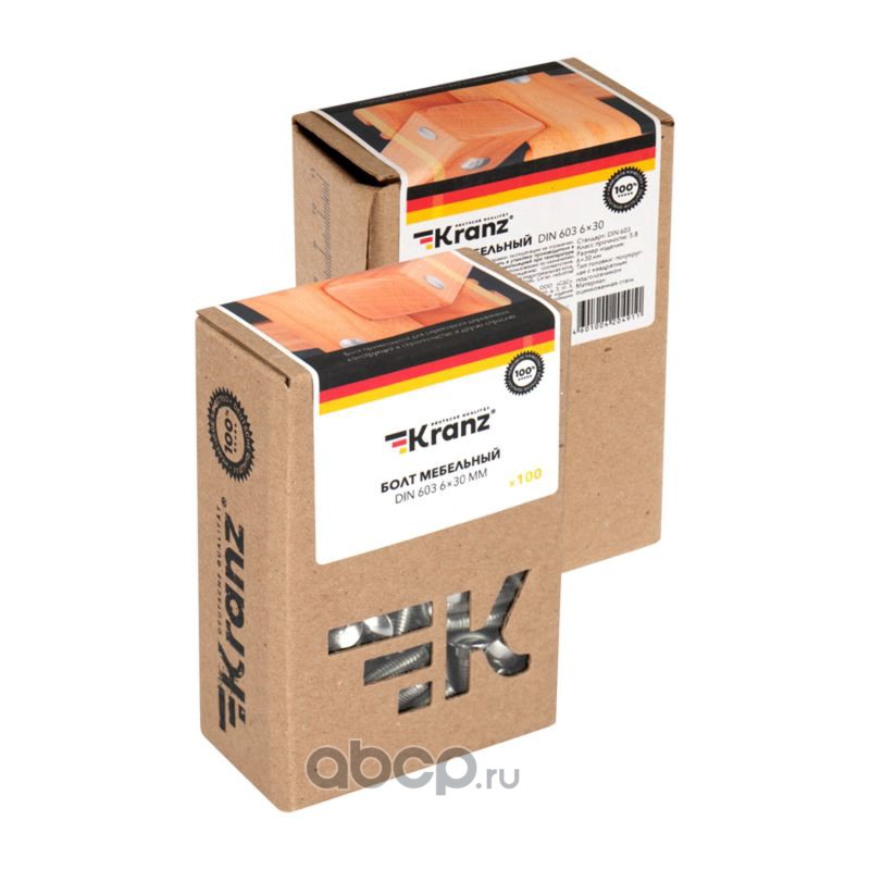 Болт мебельный KRANZ DIN 603, 6х30, короб (100 шт./уп.)