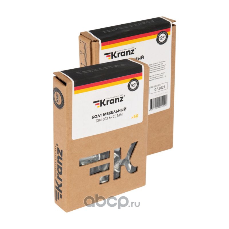 Болт мебельный KRANZ DIN 603, 6х25, короб (50 шт./уп.)